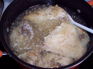Today, I thawed the chicken out and boiled it all. I’m going to use it in a few of our meals this week and refreeze the rest. IMPORTANT: When you purchase chicken, it typically says ‘Previously Frozen’ or ‘Fresh’ on the sticker. If it says ‘Previously Frozen’ and has thawed, you MUST cook it before refreezing. ‘Fresh’ is supposed to mean never frozen, but judging from the rock like mass that our ‘Fresh’ chicken comes in at the grocery store, our butcher didn’t get the memo.